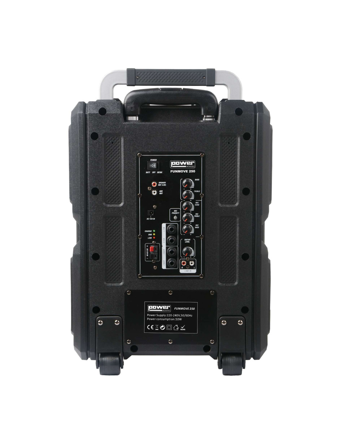 La gamme FUNMOVE s’agrandit avec l’introduction de la FUNMOVE 250. C’est une sono portable autonome sur batterie équipée de deux micros sans fil UHF, d’un lecteur multimédia et de nombreuses connexions permettant d’y brancher tout type d’appareils comme : guitares, basses, claviers, accordéons, lecteurs CD. Idéale pour une utilisation mobile, elle sera parfaite à la plage, en pique-nique, lors d’une soirée entre amis ou en classe scolaire. Son trolley offre une mobilité plus facile et pratique.