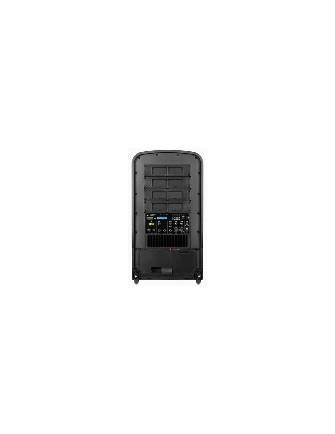 Enceinte portable amplifiée, 290 W RMS, équipé de 2 haut parleur de 8 Pouces et d'un Tweeter de 1 pouce, utilisant le principe de conception Line-Array pour étendre le champ sonore, améliorer le niveau de pression acoustique et reproduire un son naturel. la MA-929 est piloté par un DSP, et intègre un lecteur de clé USB et de carte SD ainsi qu'un récepteur Bluetooth pour un usage simple et polyvalent.