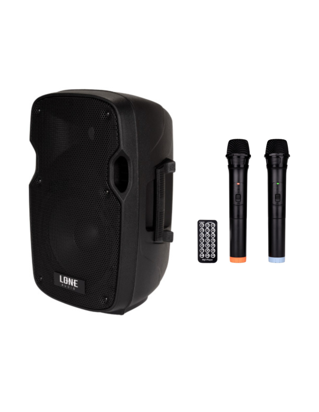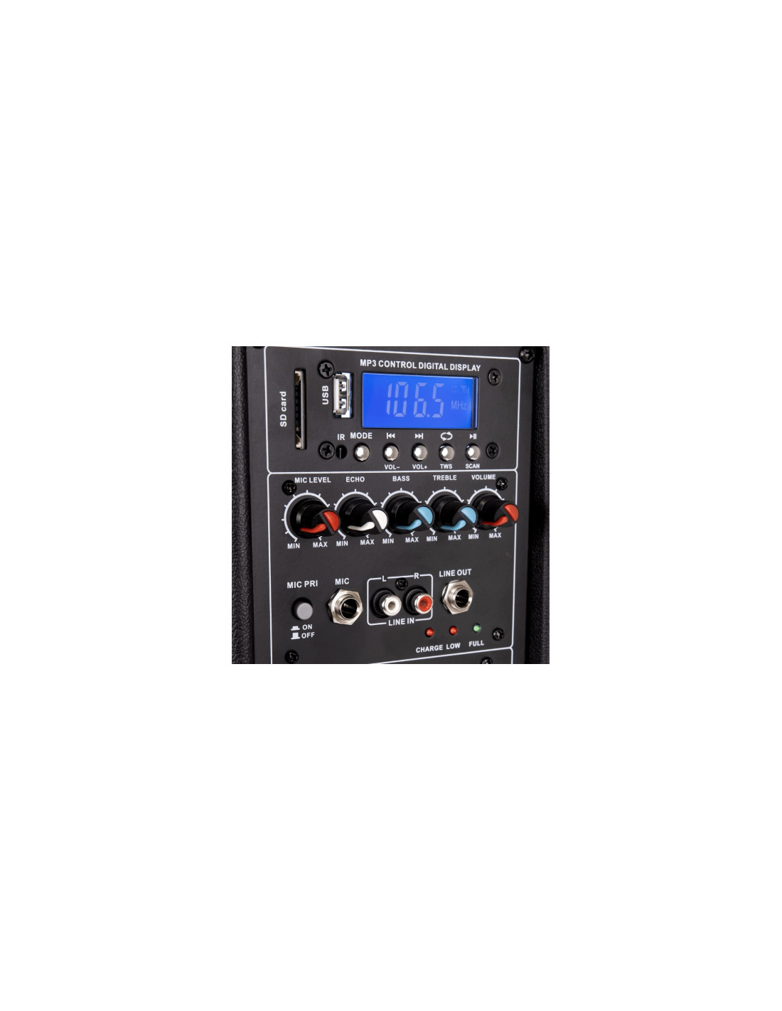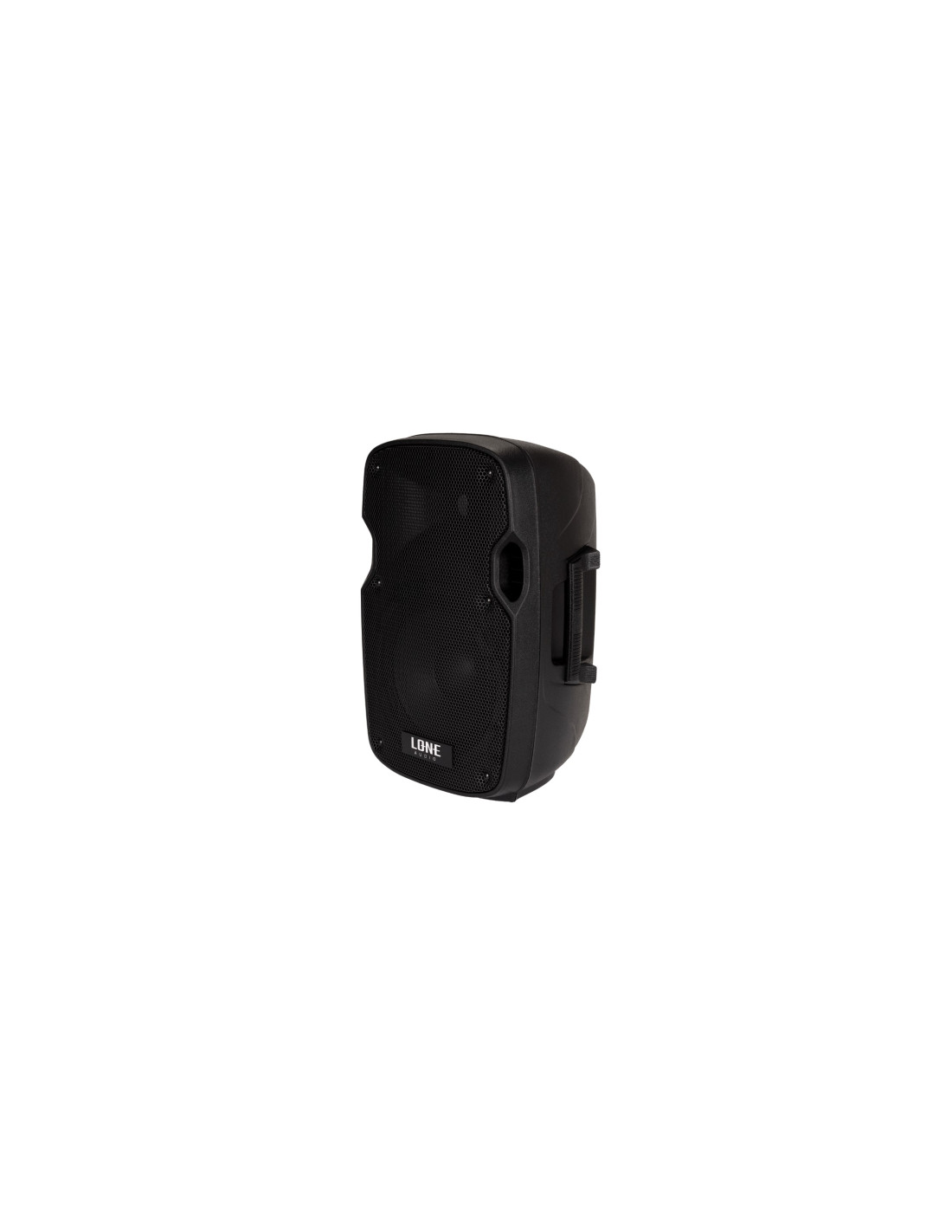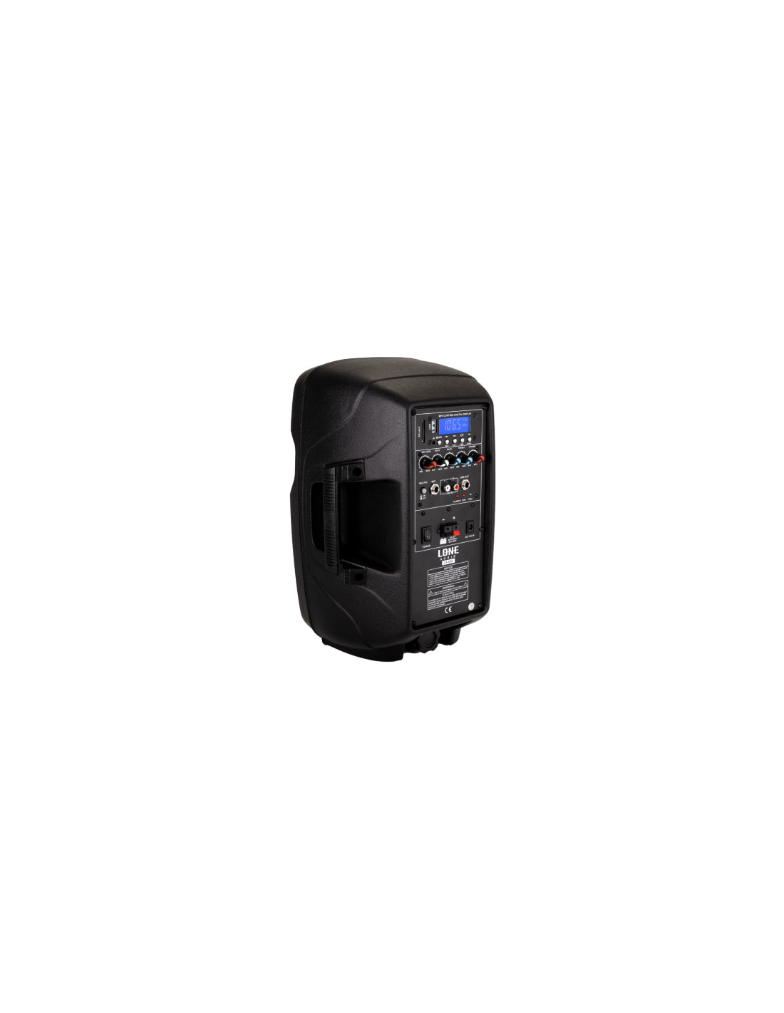 - Enceinte active en plastique moulé avec grille métal et poignée latérale de transport