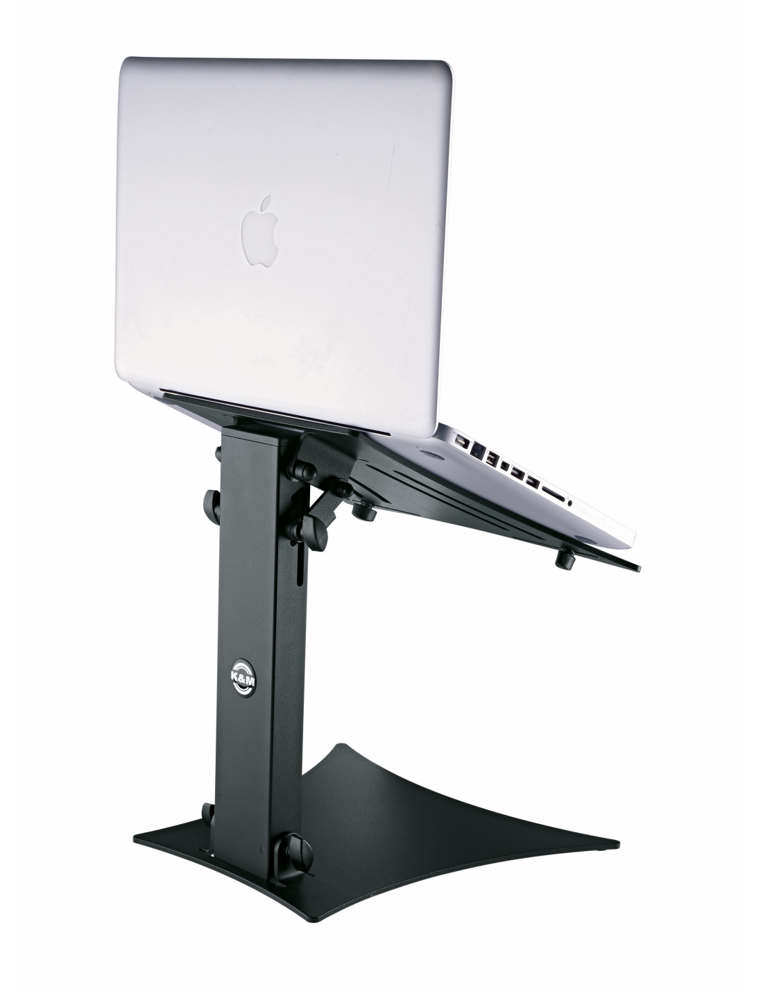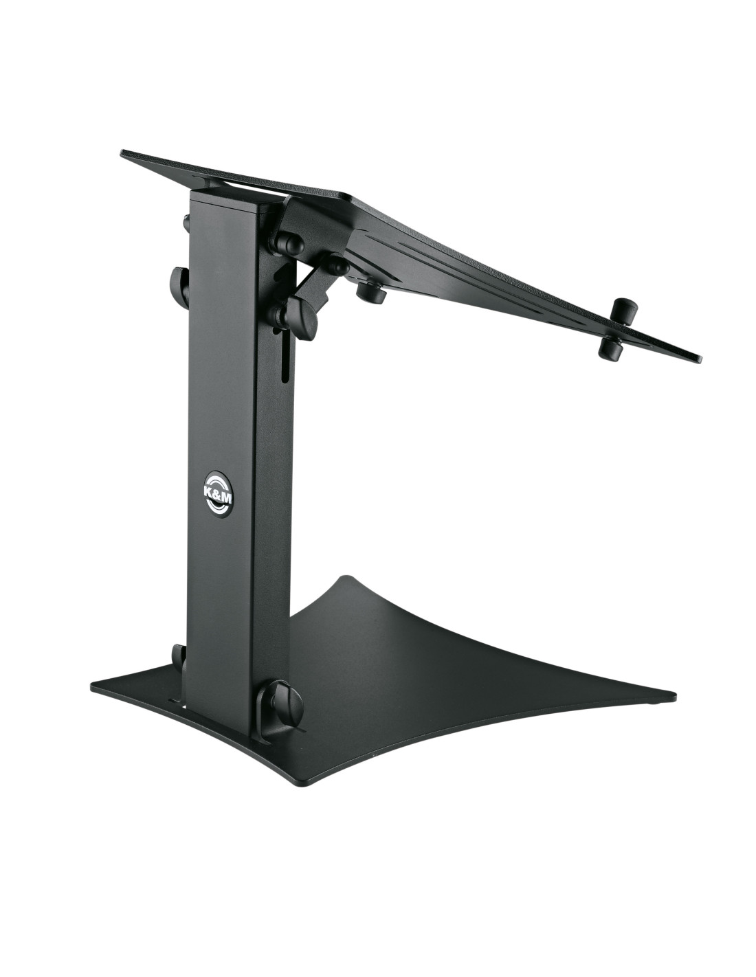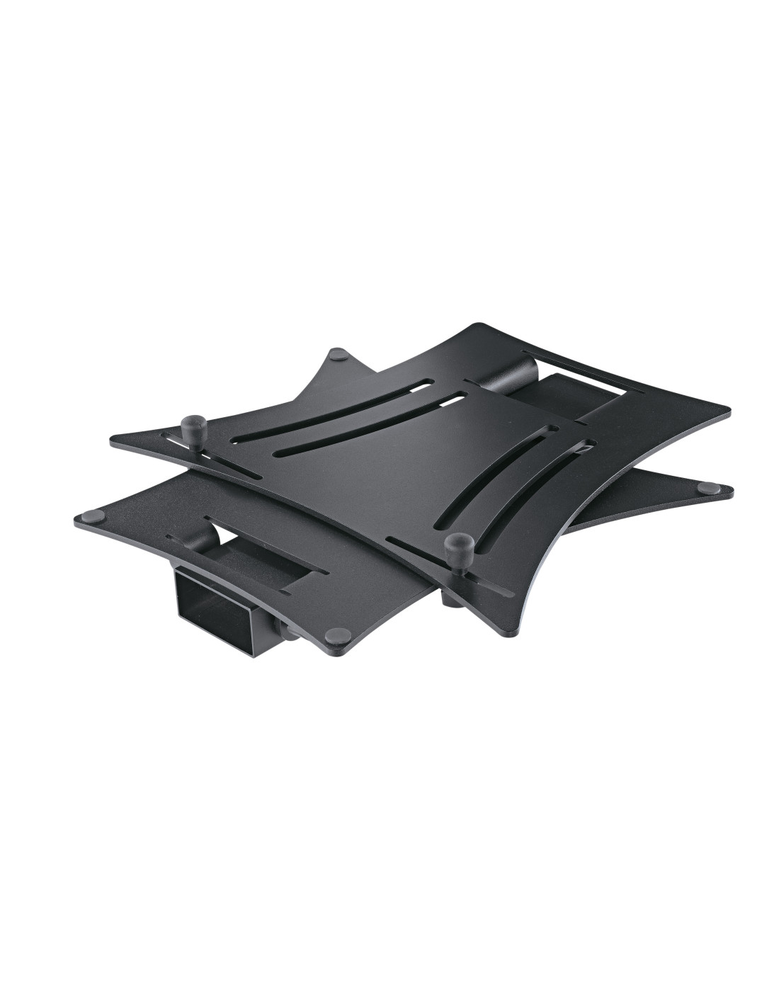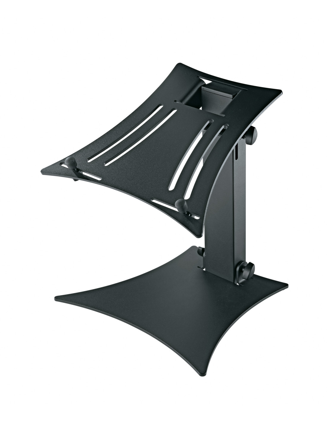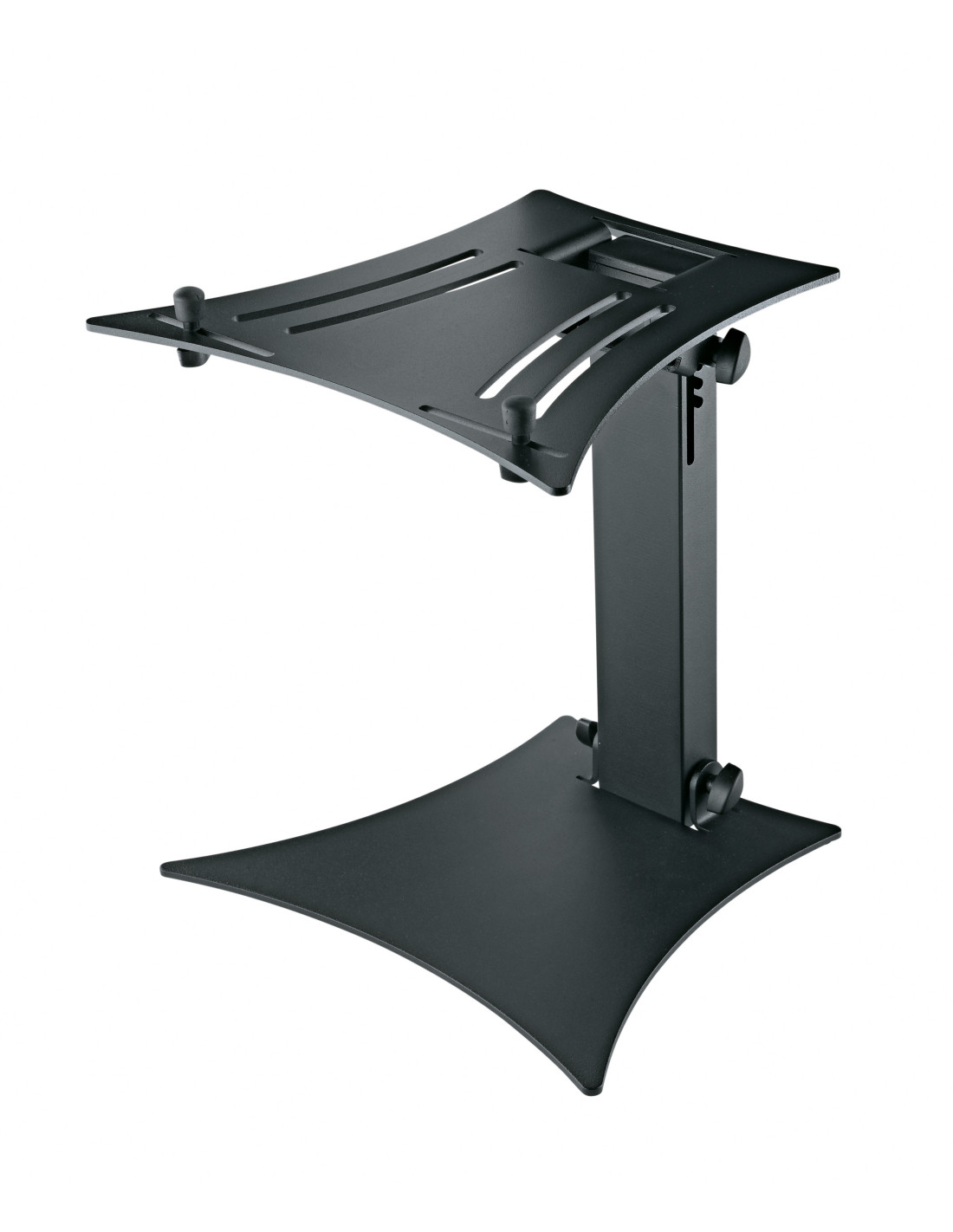 Plateau muni de butées réglables individuellement avec capuchons en caoutchouc, permettant l'utilisation de tous les modèles courants d'ordinateurs portables, mixeurs et lecteurs CD.