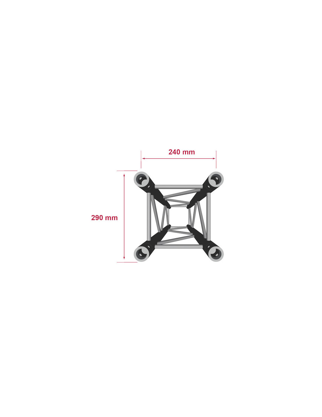 • Section carrée de 240 mm dentraxe entre chaque tube (290 mm extérieur)