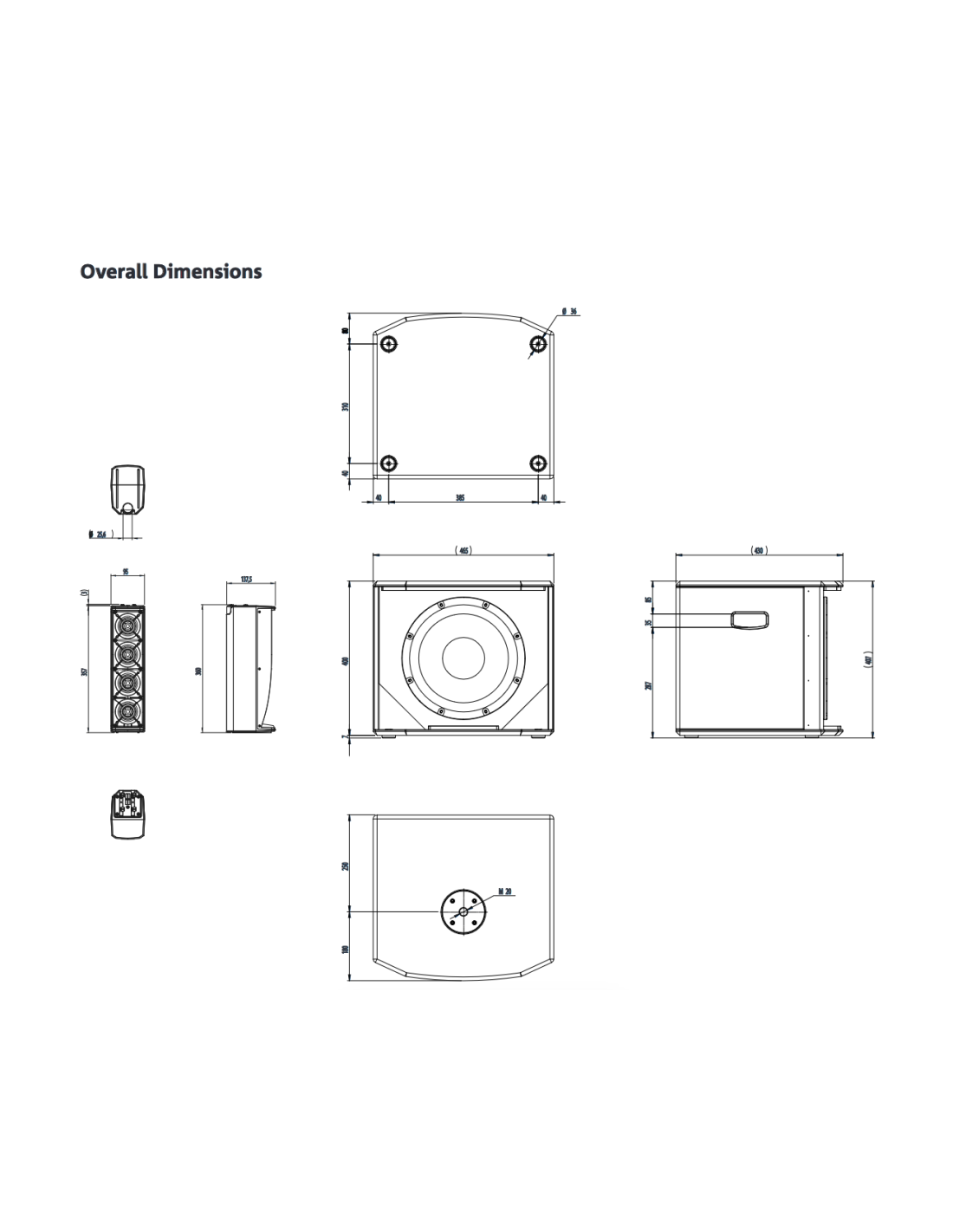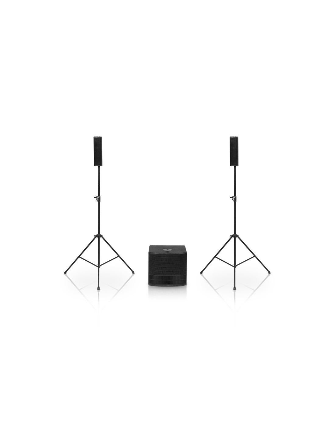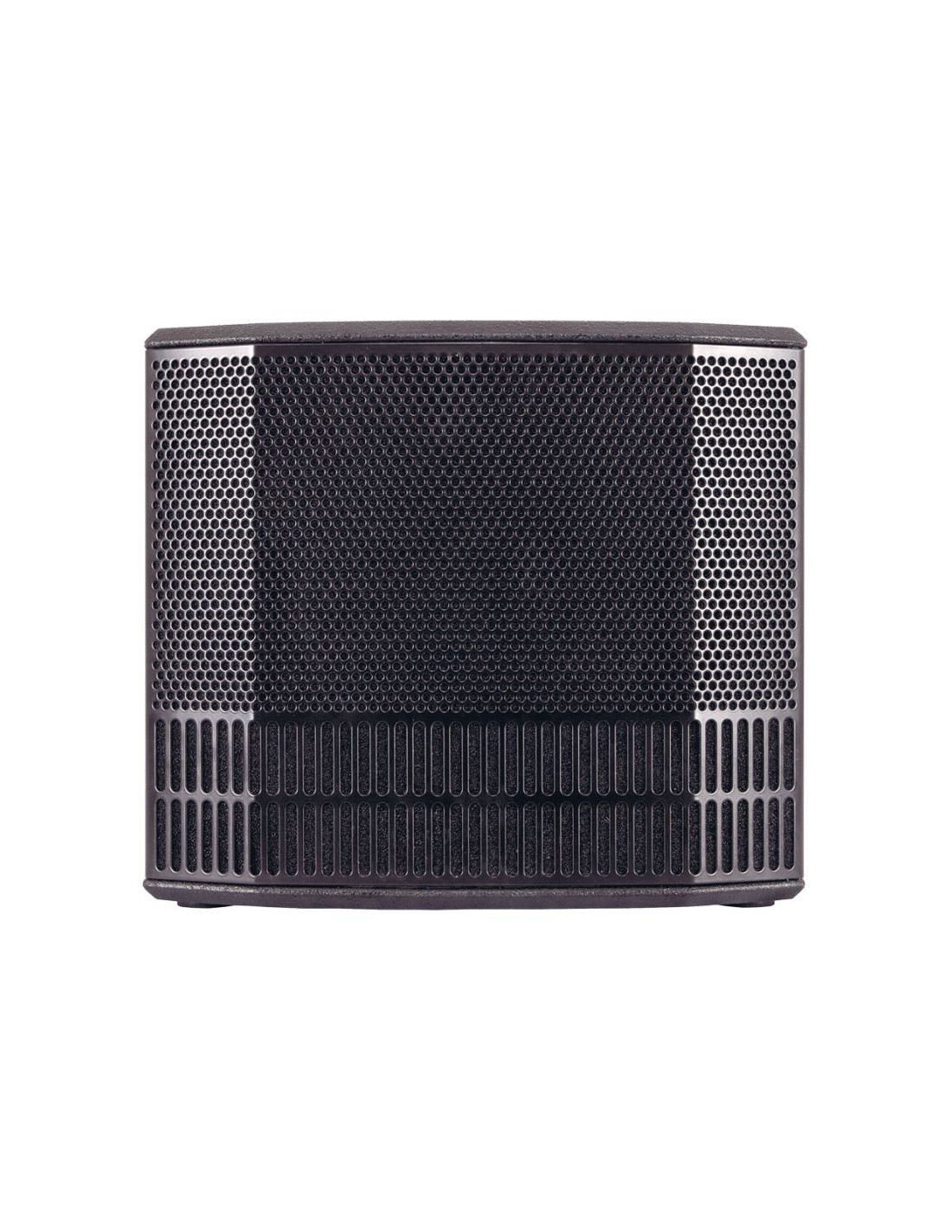 Le caisson de graves est équipé d'un généreux woofer de 12" et d'un module d'amplification. En plus des connecteurs d'entrée et des commandes de l'interface utilisateur, le caisson possède deux sorties Speakon® et un connecteur VDE réseau. Le caisson, robuste et élégant, est réalisé en multicouche de bouleau recouvert d'une peinture noire résistante anti-rayures. Deux poignées encastrées (une de chaque côté) facilitent le transport.