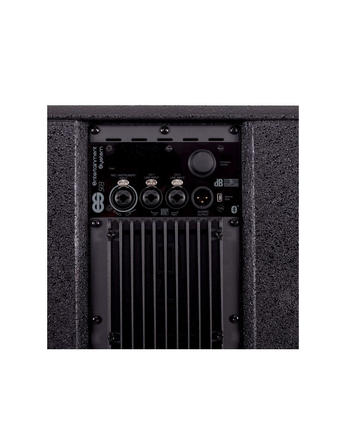 ES 503 est un système stéréo composé de 2 tops large-bande passifs et un sub qui intègre le module d'amplification qui atteint 1000 W de crête et 121 dB de pression sonore.