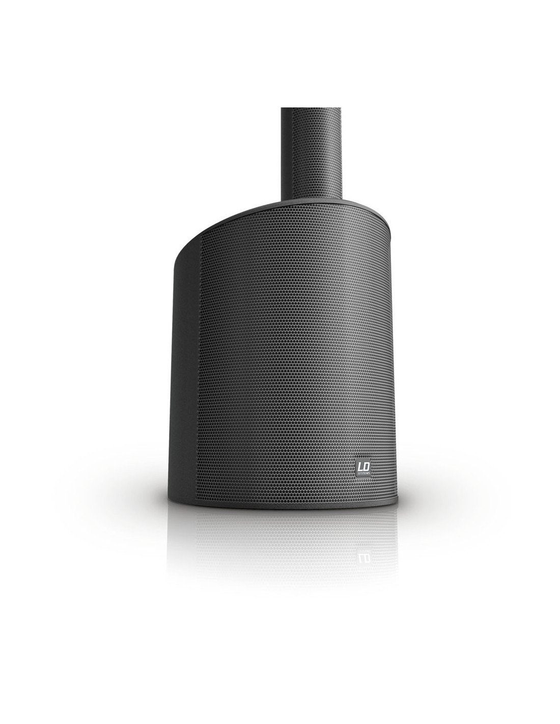 Le coffret bass reflex hébergeant le boomer de 8" (20 cm) accueille aussi les amplificateurs travaillant en Classe D du système, avec circuits de protection contre les surtensions, la surchauffe et les courts-circuits, ainsi que le DSP assurant le traitement de signal LECC, spécialité LD Systems, et un mixeur 4 canaux.