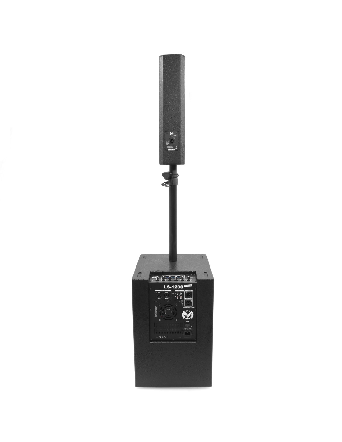 Système colonne 600 W RMS 12" + 4 x 3" avec mélangeur intégré (micro / ligne) et connectivité Bluetooth.