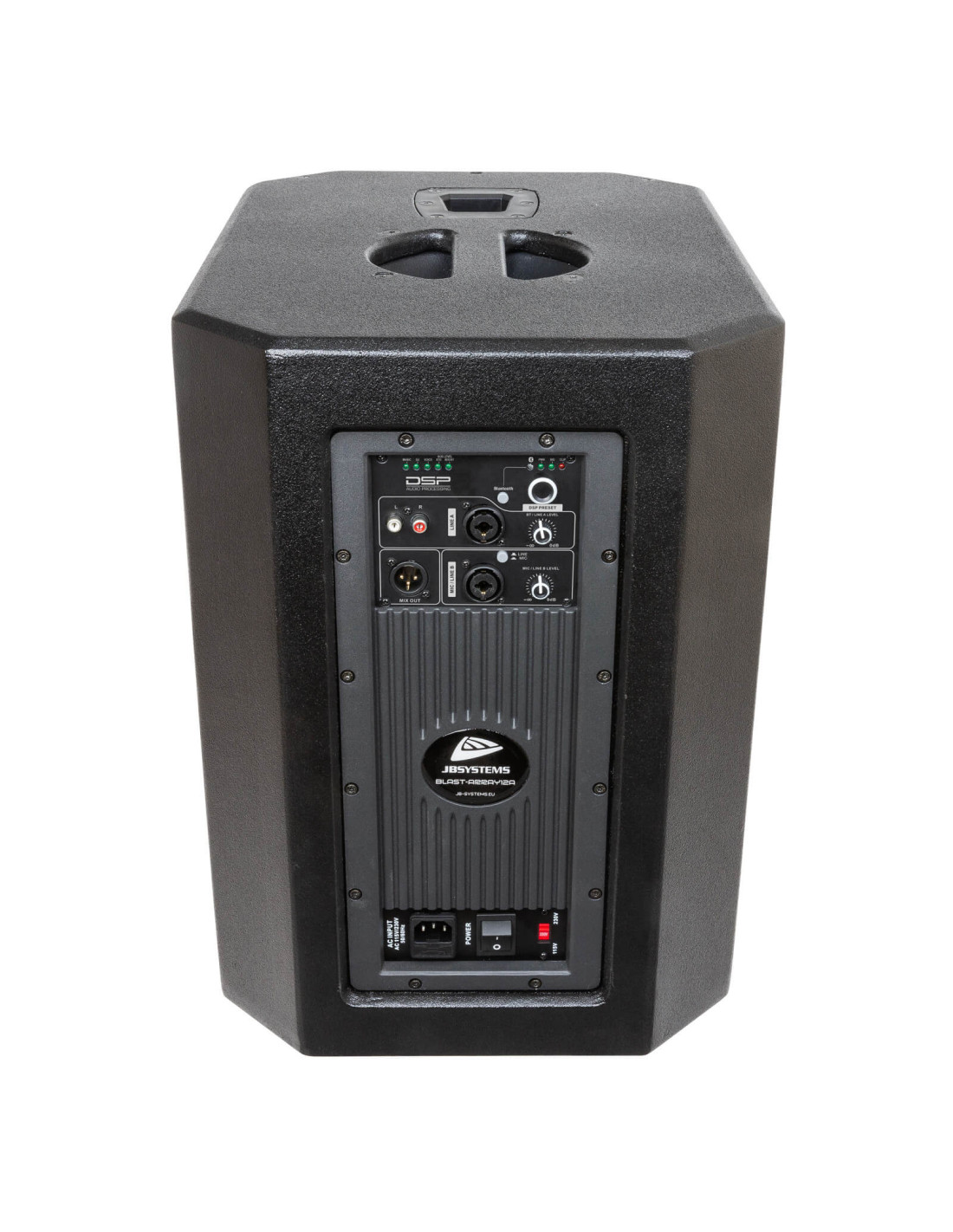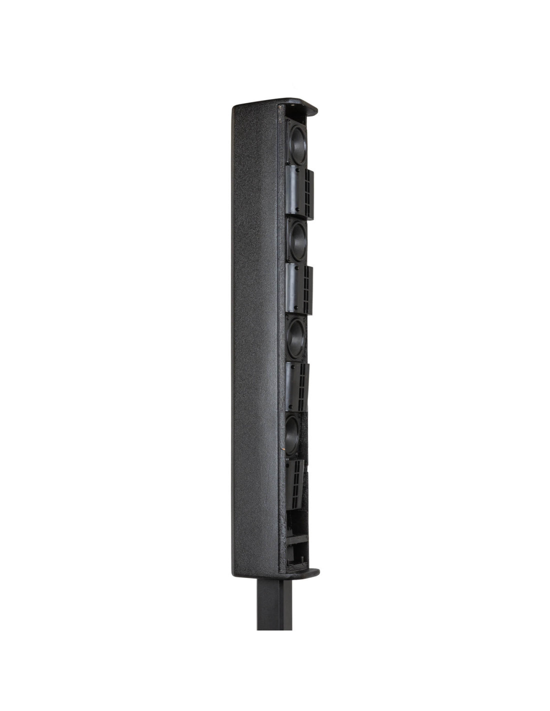 Subwoofer de 12″ avec une puissance de 450 W RMS associé à une colonne équipée de 8 haut-parleurs de 3,5″.