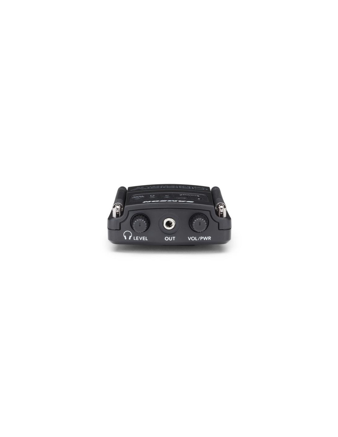 Le récepteur CR88V est doté d’un adaptateur Hot-shoe amovible à l’arrière de l’appareil. Il est équipé d’une batterie rechargeable LiOn permettant 12 heures d’utilisation et d’une prise casque avec volume dédié pour le retour du son.