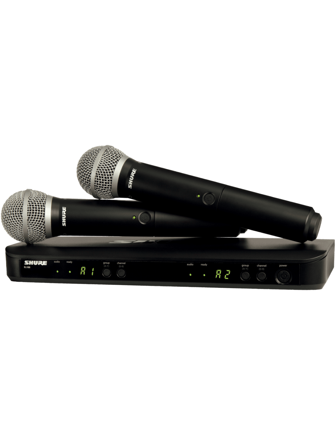 Composé d'un récepteur double BLX88E, de deux émetteurs main BLX2 équipés d’une capsule dynamique cardioïde PG58 et de deux pinces micro WA371.