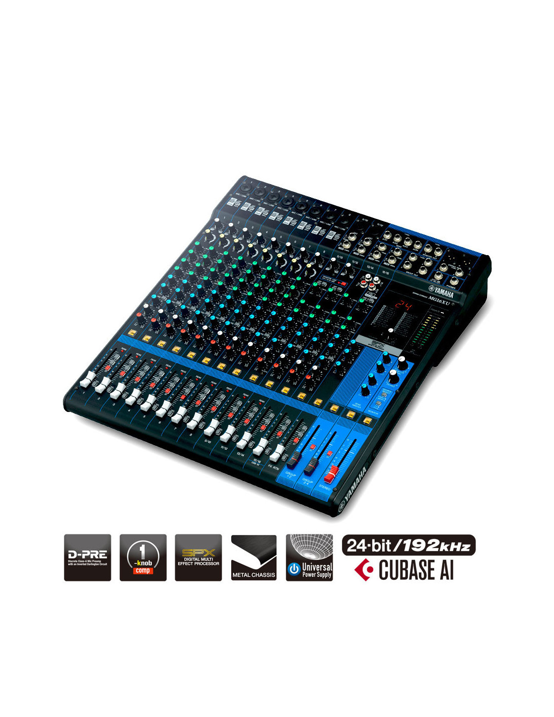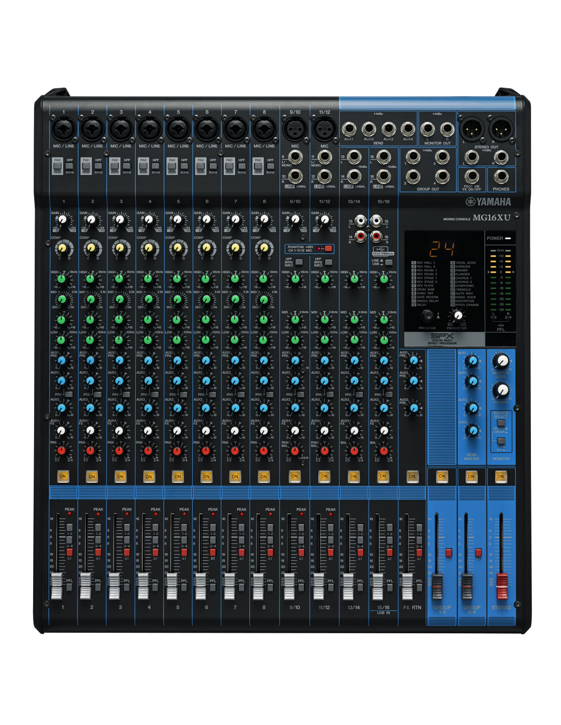 - 10 entrées micro, 16 entrées ligne (8 mono + 4 stéréo)