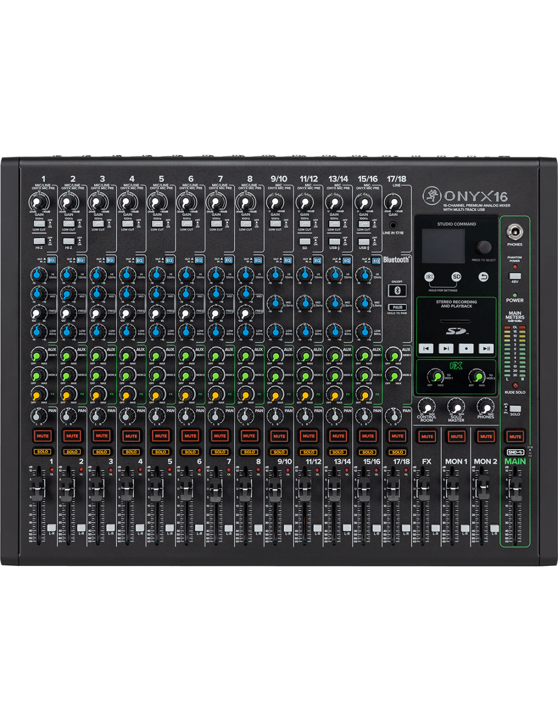 Mixage 16 canaux avec multi-effets. Ses +: interface USB, Bluetooth et lecture & enregistrement sur carte SD!
