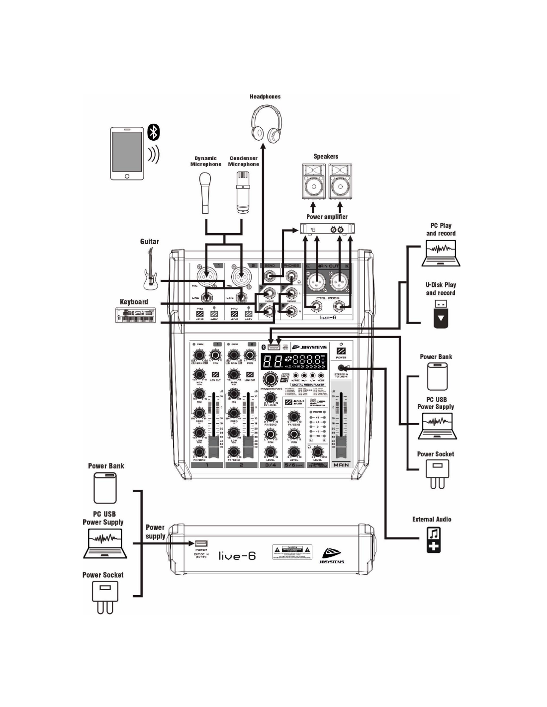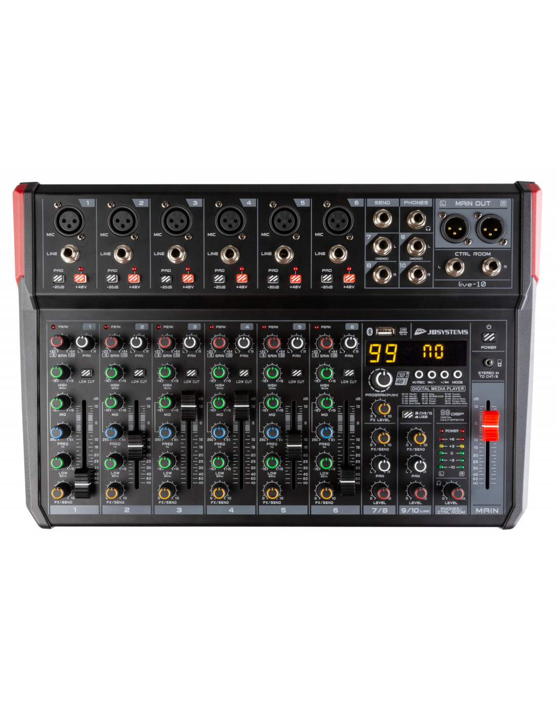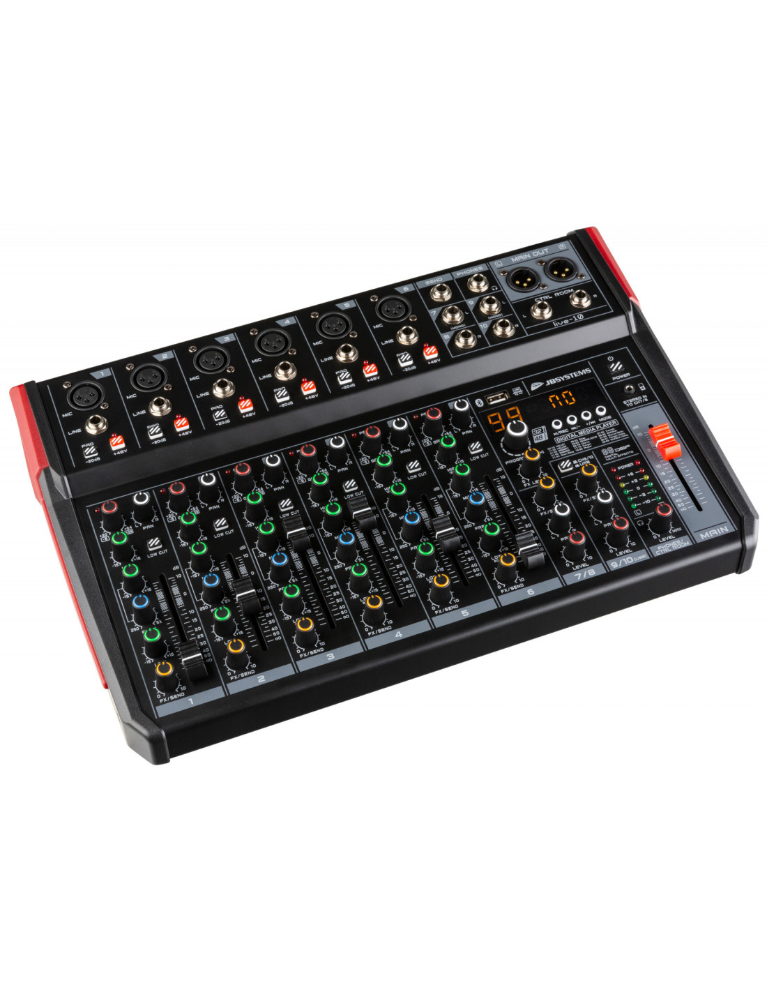 > 10 entrées sur 8 canaux (6 micro/ligne, 1 mono/ligne stéréo, 1 mono/ligne stéréo /USB/lecteur)