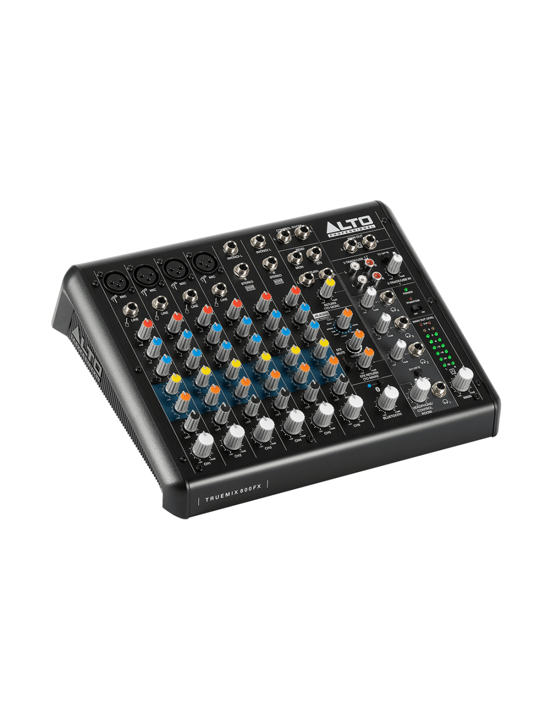 La TrueMix 800 FX d'Alto Professional est une table de mixage compacte et très complète. Avec ses huit canaux basés sur quatre voies micro et deux voies stéréo, associés à une entrée Bluetooth, une interface USB pour l'enregistrement ou la lecture et un module d'effets signé Alesis, la TrueMix 800 FX est parfaite pour les projets d'enregistrement domestique, les livestreamers ou podcasters comme pour les groupes.